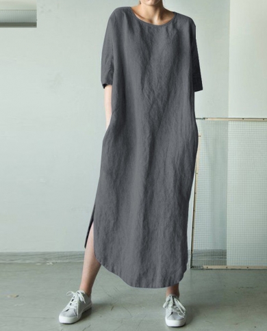 Fashion Cotton And Linen Long Dress Summer Women Casual
