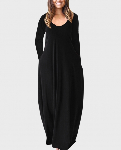 Autumn Loose Casual Black Long Maxi Dress For Women Fashion