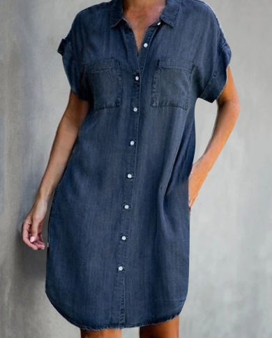 Summer Fashion Baggy Denim Dress Women Ladies Loose Casual Single