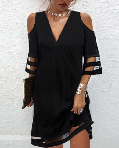 Womens Hollow Short Sleeve Black Mini Dress Slim Casual