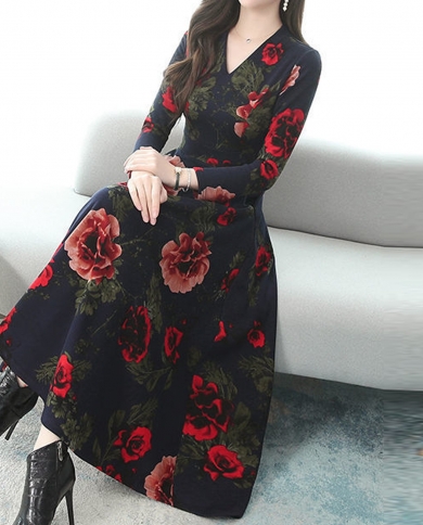 Winter New Elegant Slim Knitted Long Dress For Women Autumn