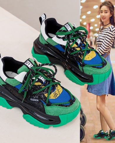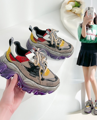 Womens New Mesh Shoes Contrast Color Comfortable Thick Bottom Sports