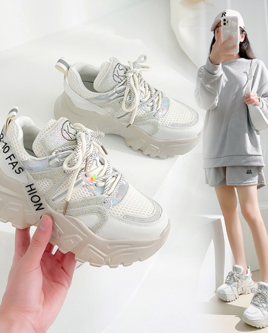 Womens New All-match Shoes Mesh Sports Breathable Thick Bottom White