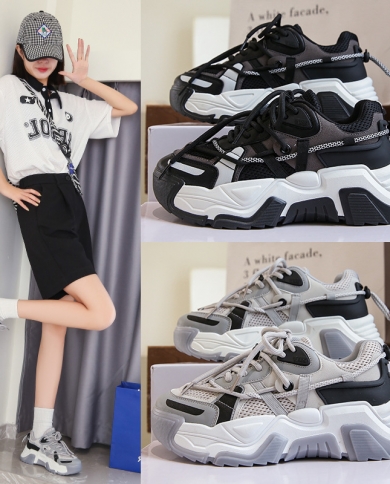 Womens New Mesh Breathable Thick-soled Inner Heightened Casual Sneakers