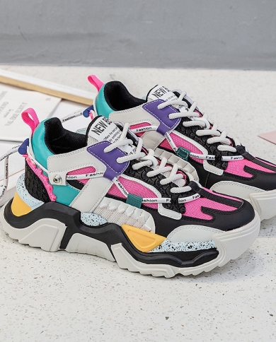 New Womens Sports Casual Shoes All-match Thick Bottom Color Matching