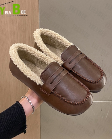 Casual Flats Loafers Fur Plush Women Shoes Designer Autumn Winter